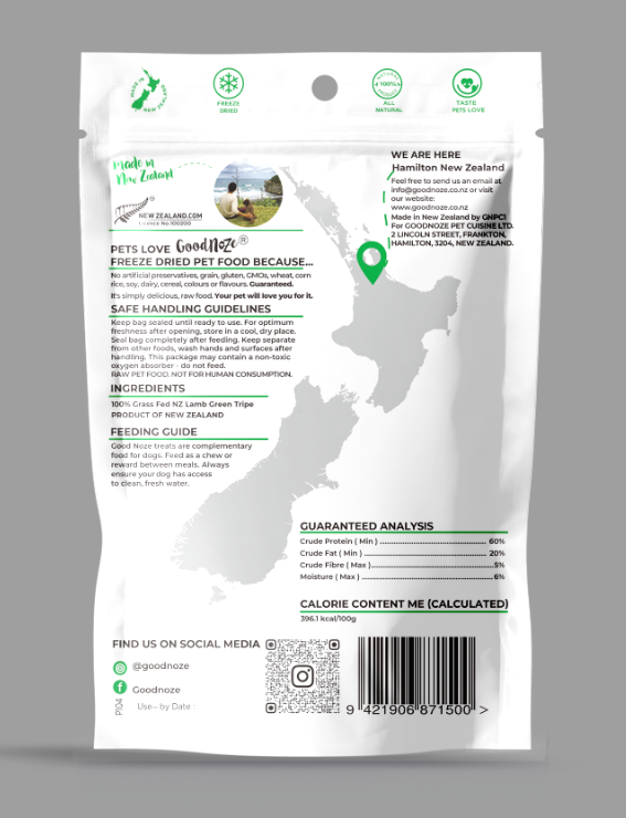 60g freeze dried NZ Lamb Green Tripe Chunks.